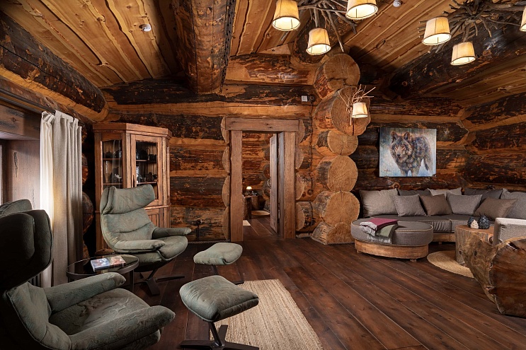 Внутреннее убранство создано по специальному дизайн-проекту. Аутентичный интерьер дополняет ультра-современная техника, обволакивающе-нежный текстиль и густой аромат вековых деревьев.
